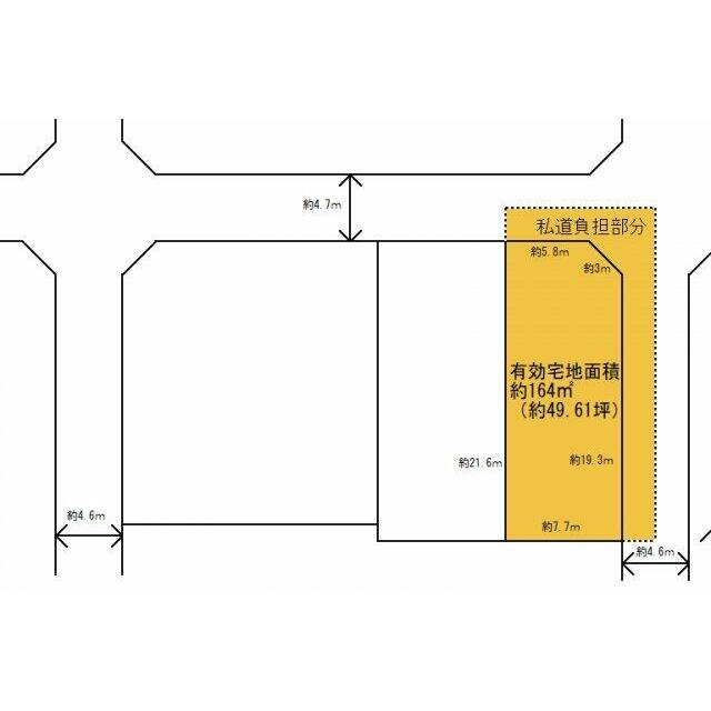 角地:2方道路 北4.7m 私道 接面7.3m 東4.6m 私道 接面20.8m |